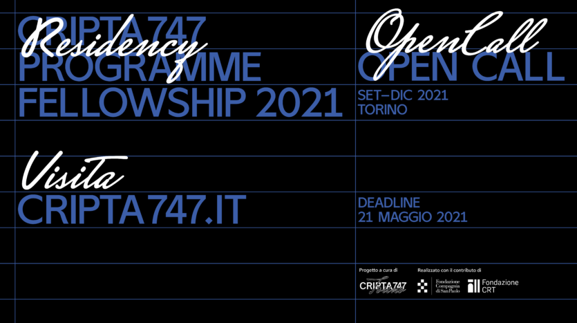 Cripta747 invita artisti, curatori e ricercatori attivi sul territorio nazionale o italiani all’estero a partecipare alla call for proposal a loro dedicata per la quinta edizione di Residency Programme, una residenza di ricerca con borsa di studio che si terrà a Torino nei mesi di settembre – dicembre 2021.